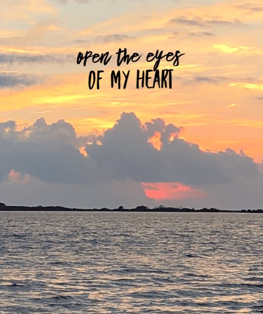 What’s the perception of vision, of sight? Is it linear? Can it be broadened from the view of the eyes only? Let us “see” with our hearts; internal sight of God’s covenant, strength, goodness, light in the darkness.